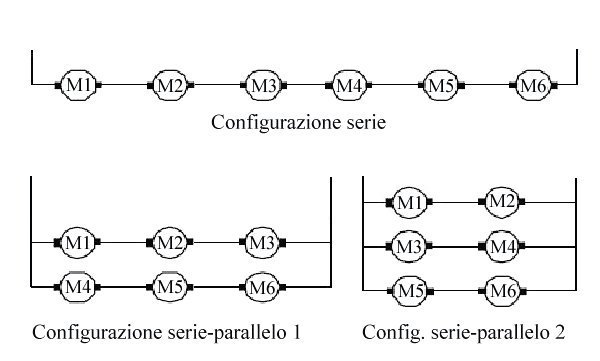 Negli equipaggiamenti con sei motori da trazione, usati frequentemente nelle reti a 3000 V, i collegamenti possibili sono i seguenti (adottando motori con tensione massima UMAX = 1500 V):